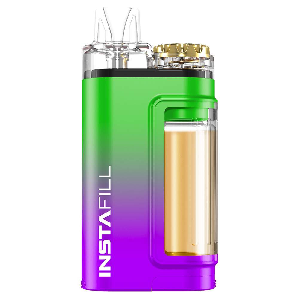 Indulge in a choice of 14 exquisite fruit, soda, and menthol flavours, each available in 20mg nicotine salt strength. Refilling your 2ml pod is easy – simply insert the 10ml bottle into the Instafill 3500, tilt the device, and press the top button to replenish your e-liquid. Once the bottle is empty, you can responsibly dismantle the battery and recycle your Instafill 3500.