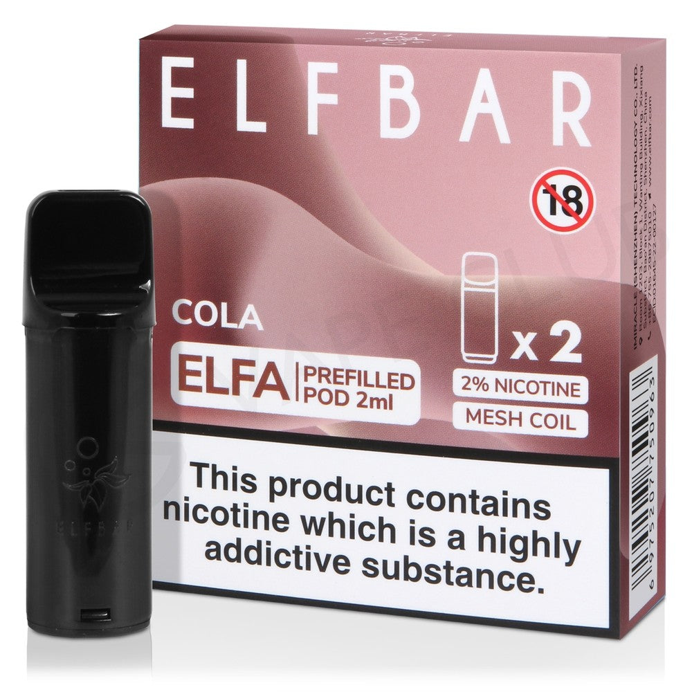 The Cola Elf Bar Elfa prefilled pods are made to be used with the Elf Bar Elfa vape kit. They each hold 2ml of e-liquid, which will deliver up to 600 puffs per pod. As they contain salt nicotine, you’ll experience a smoother throat hit and a quicker craving satisfaction. Beyond that, they’re designed to create an MTL (Mouth To Lung) inhale with a discreet amount of vapour and a cigarette-like feel.
