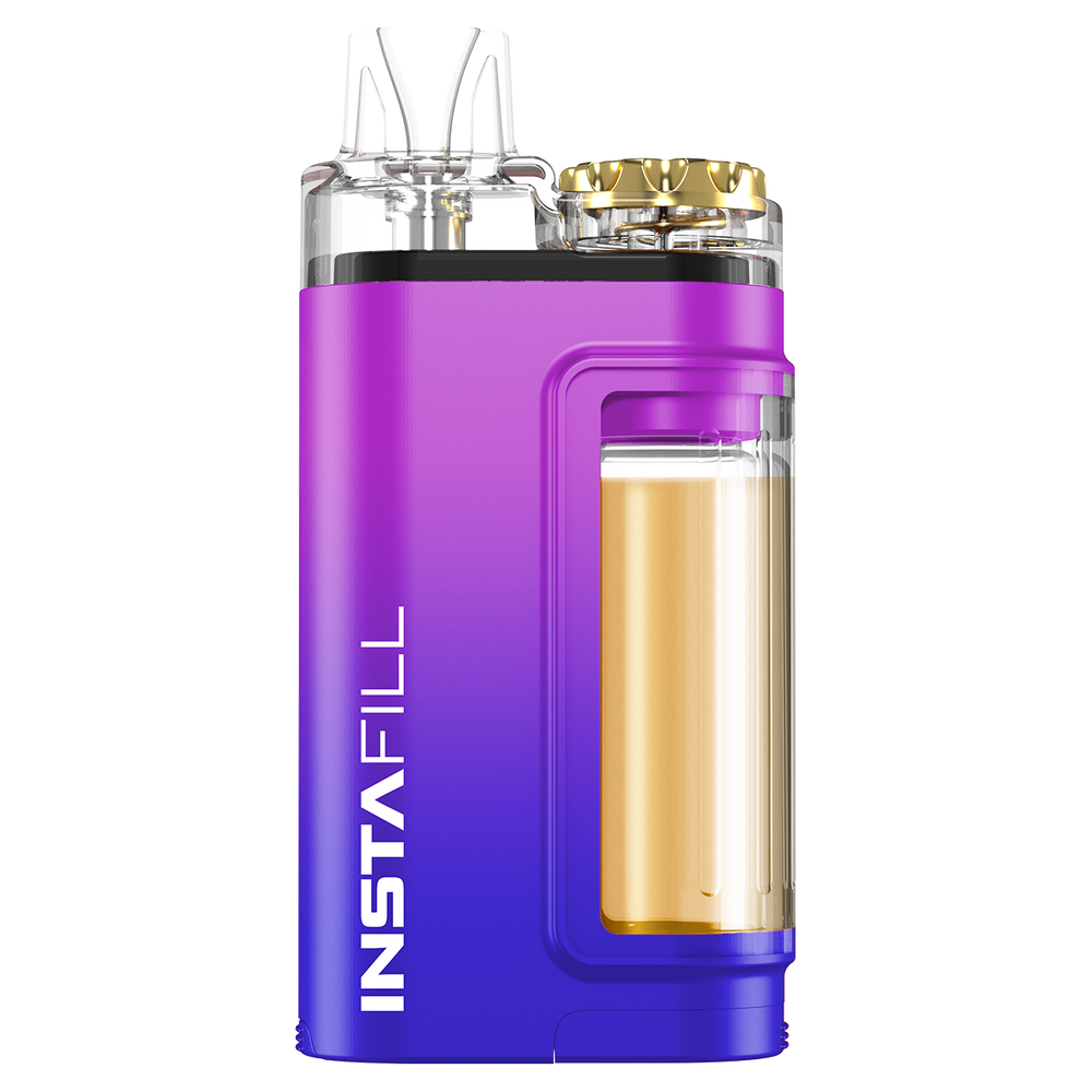 Indulge in a choice of 14 exquisite fruit, soda, and menthol flavours, each available in 20mg nicotine salt strength. Refilling your 2ml pod is easy – simply insert the 10ml bottle into the Instafill 3500, tilt the device, and press the top button to replenish your e-liquid. Once the bottle is empty, you can responsibly dismantle the battery and recycle your Instafill 3500.
