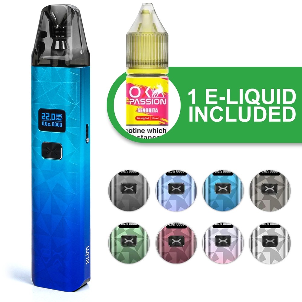 The OXVA Xlim Classic Edition pod kit is ideal for vapers with any level of experience. This stylish gradient engraved device is part of the popular Xlim vape kit series by OXVA and features a larger, 1000mAh built-in battery with a 30W max power output, lasting around a day between charges and quickly reaching full power in as little as 30 minutes. Perfect for switching up vapour production, the included 0.6 Ohm and 0.8 Ohm pods allow you to easily alternate between MTL (Mouth To Lung) and RDTL (Restricted Direct To Lung) vaping.