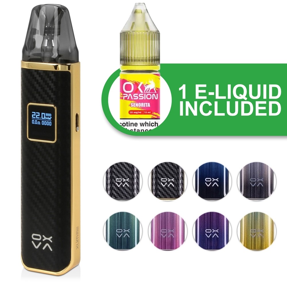 The OXVA Xlim Pro pod vape kit is an upgraded version of the popular OXVA Xlim kit, featuring a larger capacity 1000mAh battery and a higher 30W max wattage output. The Xlim Pro can deliver both MTL (Mouth To Lung) and RDTL (Restricted Direct To Lung) vapes and can last all day on one charge. Inside the box you’ll find two pods, each with a different resistance, so you can try them both to find your favourite.