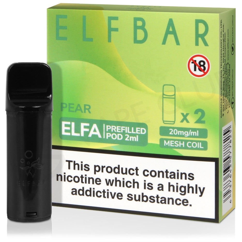 The Pear Elf Bar Elfa prefilled pods are compatible with both the Elfa and Elfa Pro vape kits. They each hold 2ml of e-liquid, which will deliver up to 600 puffs per pod. As they contain salt nicotine, you’ll experience a smoother throat hit and a quicker craving satisfaction. Beyond that, they’re designed to create an MTL (Mouth To Lung) inhale with a discreet amount of vapour and a cigarette-like feel.